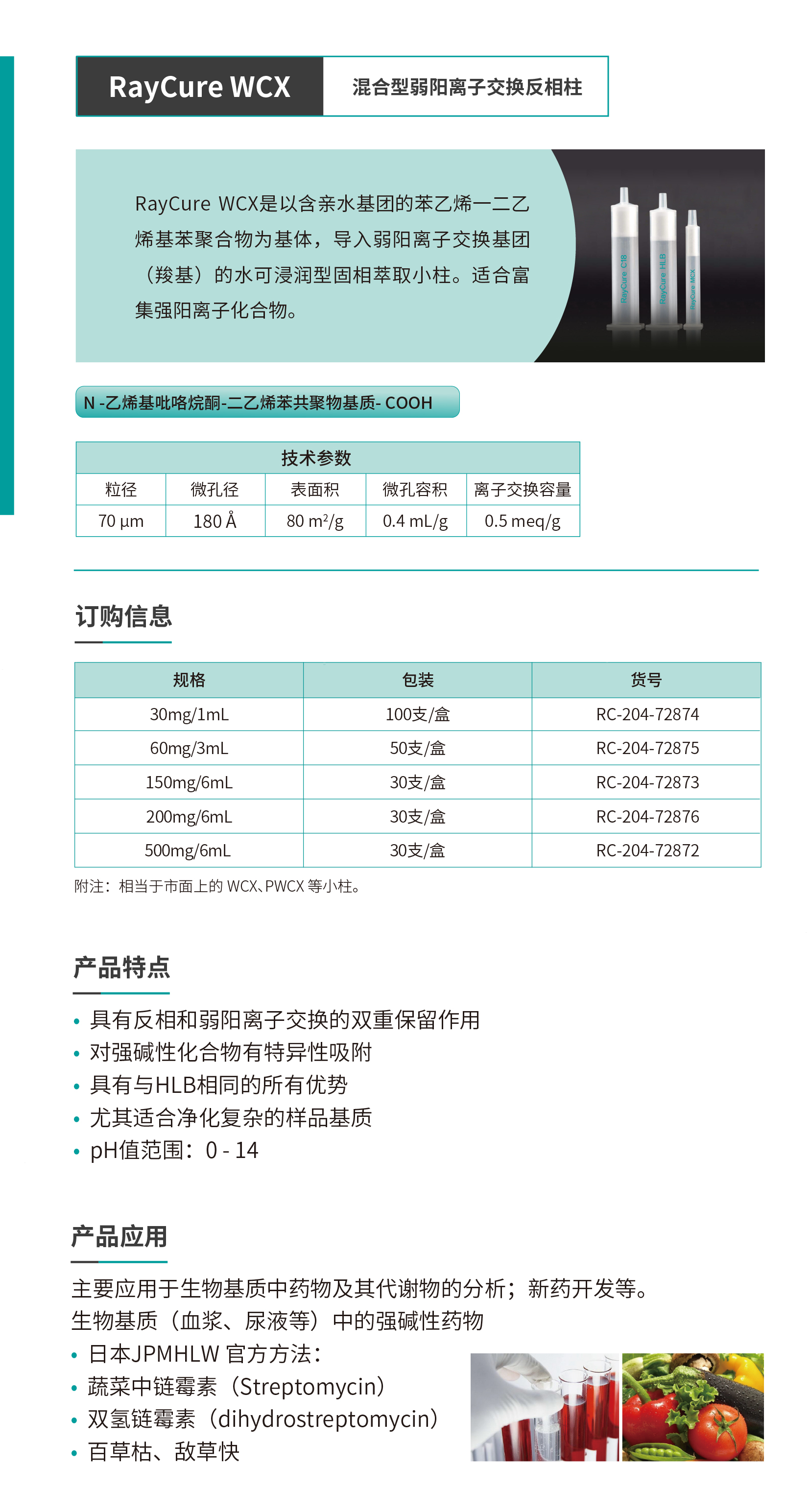 RayCure WCX 混合型弱陽離子交換反相柱